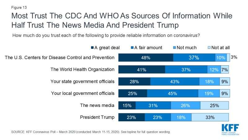 Figure 13: Most Trust The CDC And WHO As Sources Of Information While Half Trust The News Media And President Trump