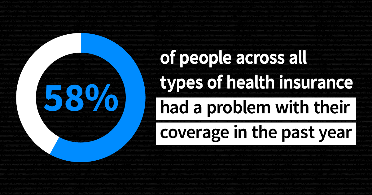 The survey finds nearly six in 10 people with health insurance experienced a problem using their insurance in the past year, with even larger shares reporting problems among people who are sick or who have mental health needs.