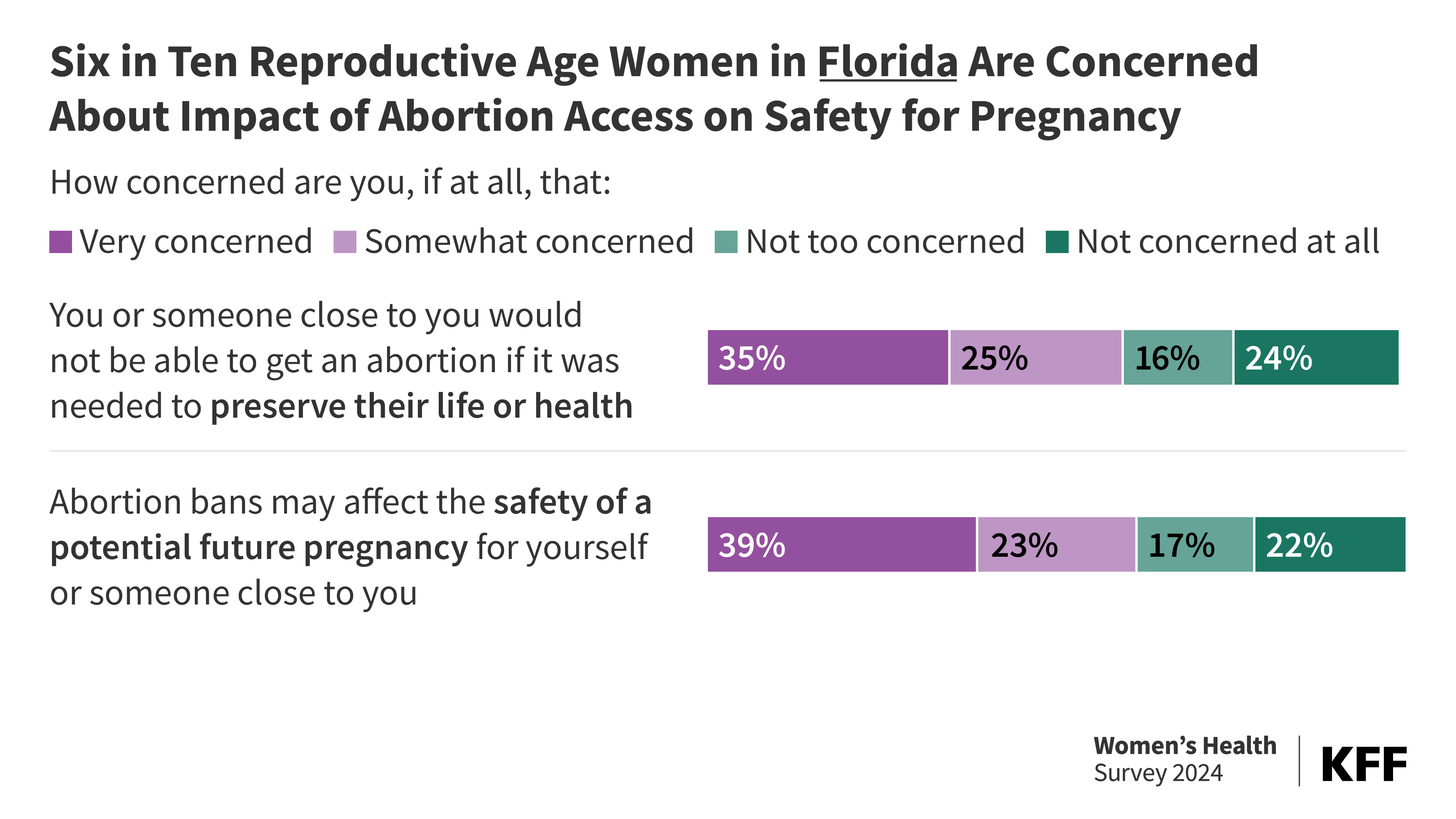 The 2024 KFF Women’s Health Survey is the latest in a series of nationally representative surveys on women’s health conducted by KFF since 2001. The survey’s objective is to track and document women’s experiences and knowledge related to health and well-being. The 2024 survey includes a nationally representative sample of 6,246 adults ages 18 to 64, including 5,055 women and 1,191 men, and was conducted from May 15 to June 18, 2024. To better understand health care disparities, the survey includes representative samples of Black, Hispanic, and Asian or Pacific Islander women as well as those who identify as LGBT+. The initial briefs are focused on abortion experiences, knowledge, and attitudes among reproductive age women in the U.S., as well Florida and Arizona, two states with abortion ballot measures in the 2024 election. Future briefs will focus on women’s experiences with contraception, fertility services, mental health, and intimate partner violence and other topics related to health care access, cost, and insurance coverage.