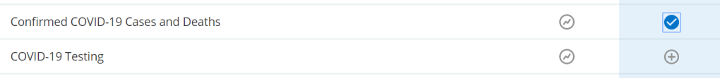 Step 1: Choose from the selection of State Health Facts indicators below by clicking the “+” button next to indicators in the “Add to Custom State Report” column.