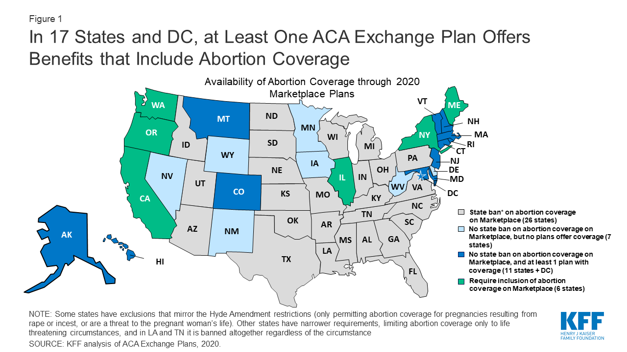 Figure 1: In 17 States and DC, at Least One ACA Exchange Plan Offers Benefits that Include Abortion Coverage