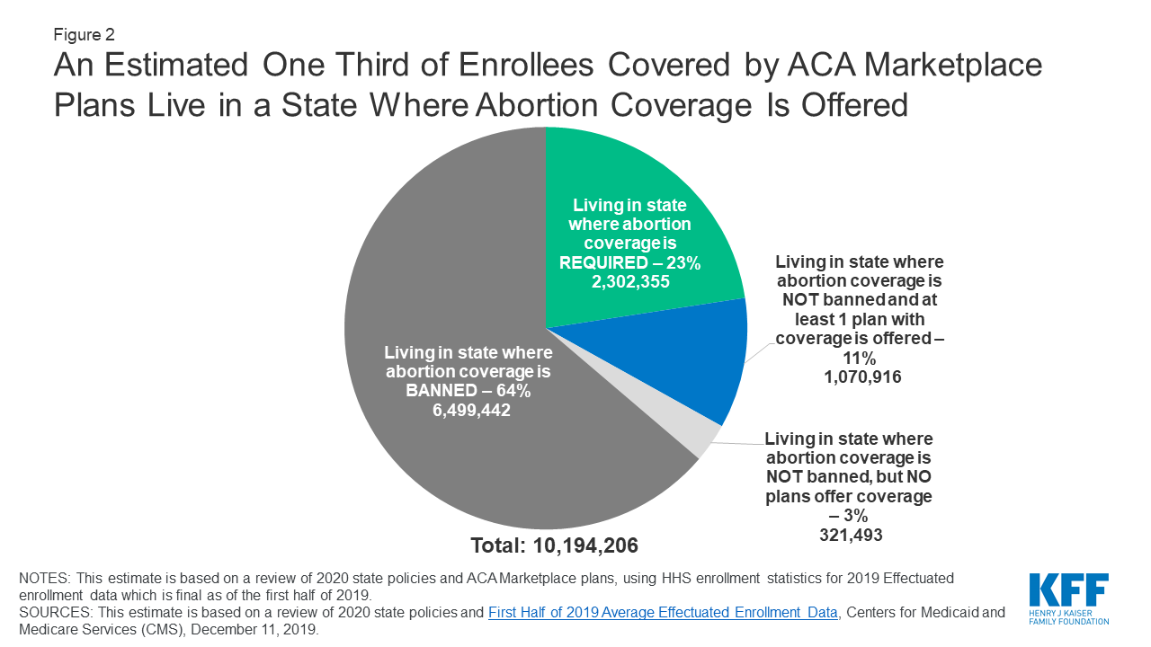 Figure 2: An Estimated One Third of Enrollees Covered by ACA Marketplace Plans Live in a State Where Abortion Coverage Is Offered