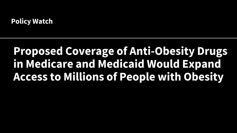 This policy watch examines the implications of new proposed regulations that would allow Medicare and require Medicaid to cover drugs used to treat obesity, including a relatively new class of highly effective but costly drugs known as GLP-1s.