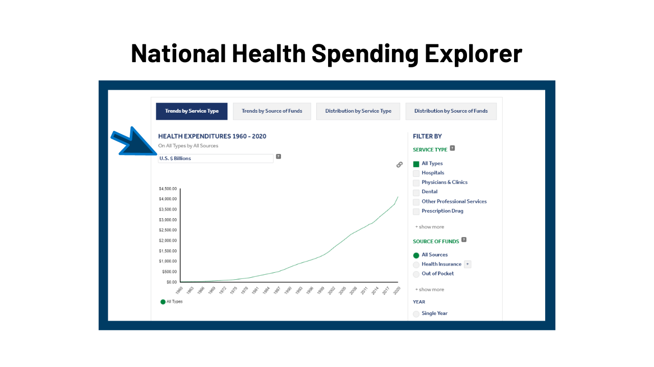 This interactive Peterson-KFF Health System Tracker tool allows users to examine five decades worth of data on health expenditures by federal and local governments, private insurers, and individuals.