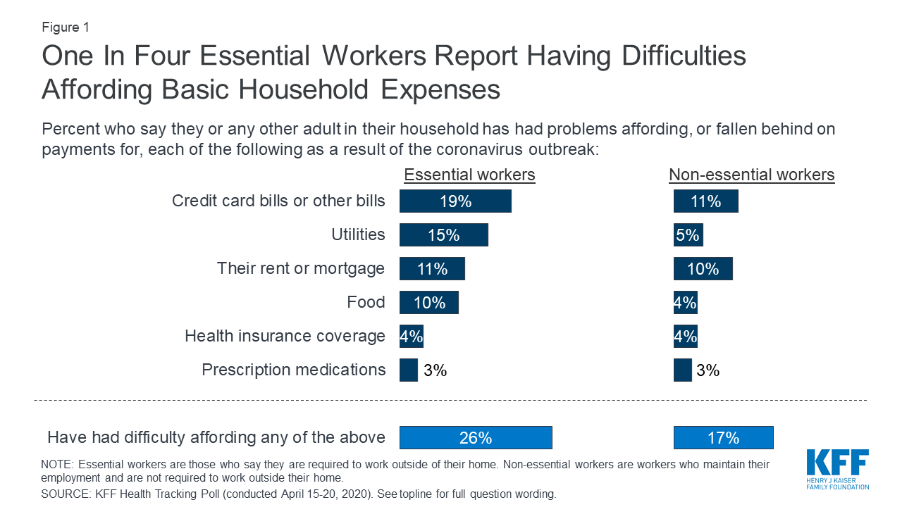 Figure 1: One In Four Essential Workers Report Having Difficulties Affording Basic Household Expenses