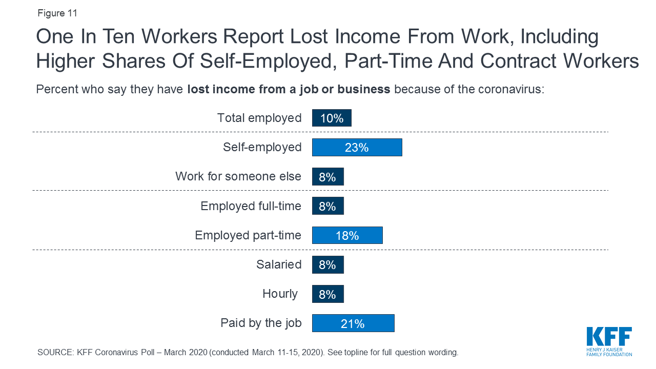 Figure 11: One In Ten Workers Report Lost Income From Work Or Business, Including One-Quarter Of Self-Employed And Contract Workers