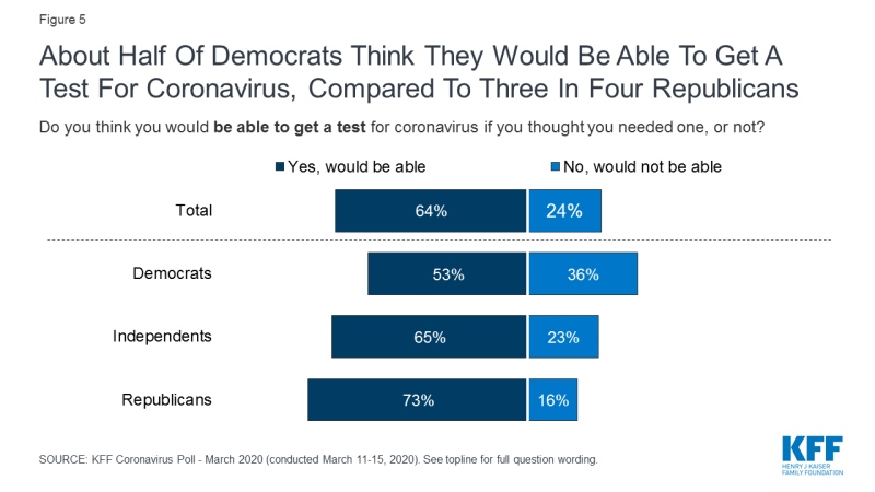 Figure 5: About Half Of Democrats Think They Would Be Able To Get Test For Coronavirus, Compared To Three In Four Republicans