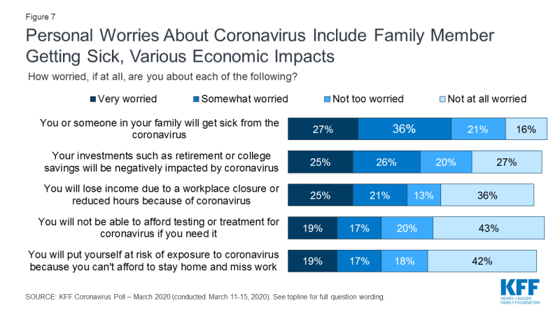 Figure 7: Personal Worries About Coronavirus Include Family Member Getting Sick, Various Economic Impacts