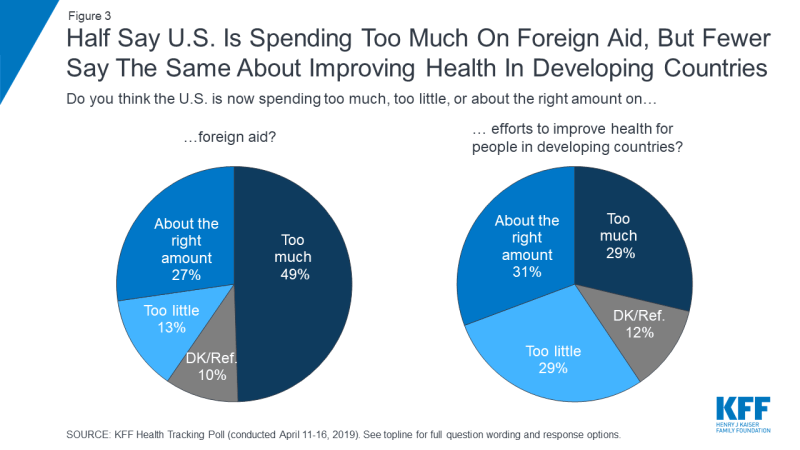 Figure 3: Half Say U.S. Is Spending Too Much On Foreign Aid, But Fewer Say The Same About Improving Health In Developing Countries