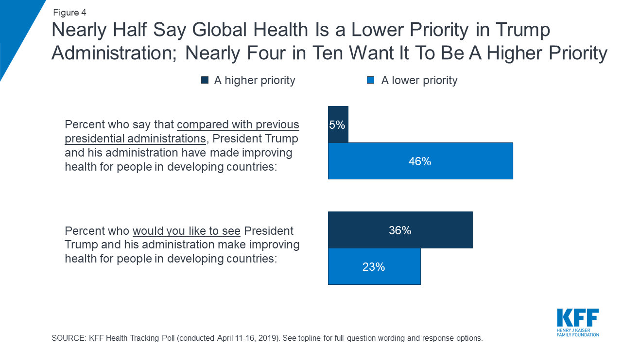 Figure 4: Nearly Half Say Global Health Is a Lower Priority in Trump Administration; Nearly Four in Ten Want It To Be A Higher Priority