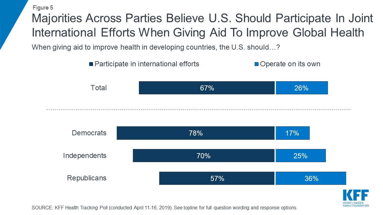 Figure 5: Majorities Across Parties Believe U.S. Should Participate In Joint International Efforts When Giving Aid To Improve Global Health