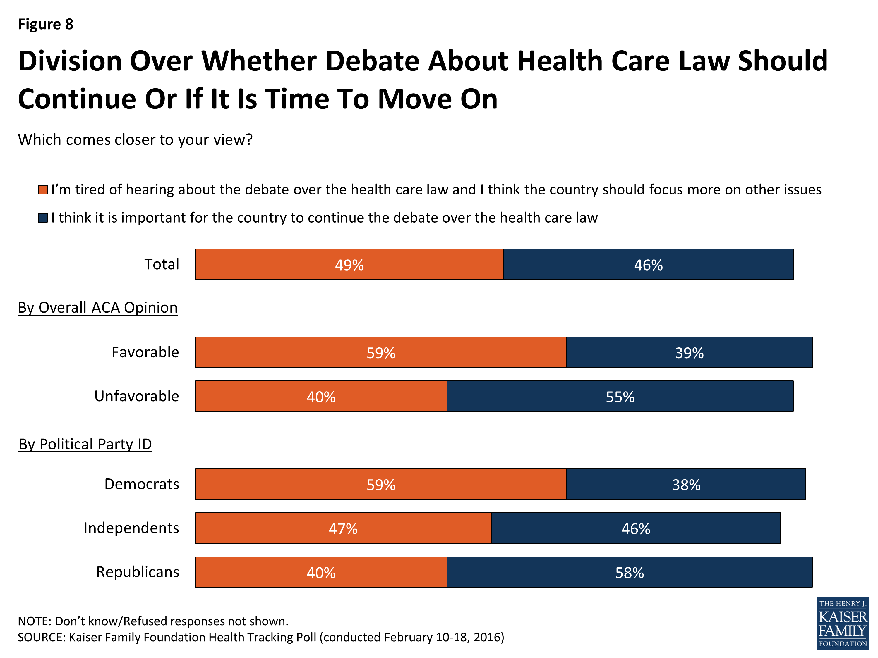 Figure 8: Division Over Whether Debate About Health Care Law Should Continue Or If It Is Time To Move On