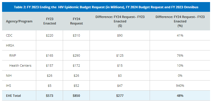 Domestic HIV Funding in the White House FY 2024 Budget Request